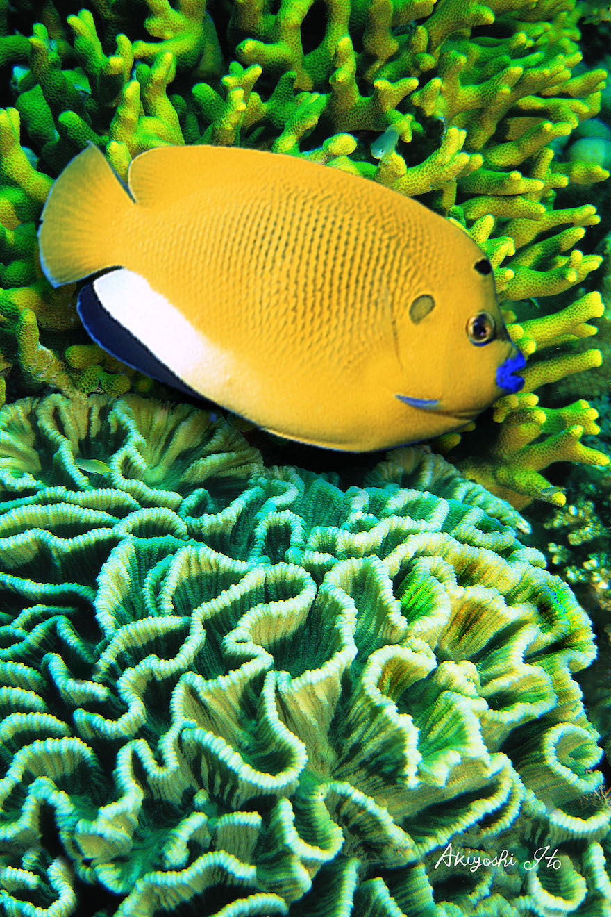 イシサンゴと共にクローズアップされた『シテンヤッコ』。ひょうきん顔が愛らしい。口元に青いべにを付けたような特異な表情の持ち主である。そんな彼でも、自己の将来をあれこれ考えると、切ない時間だけが過ぎていった。